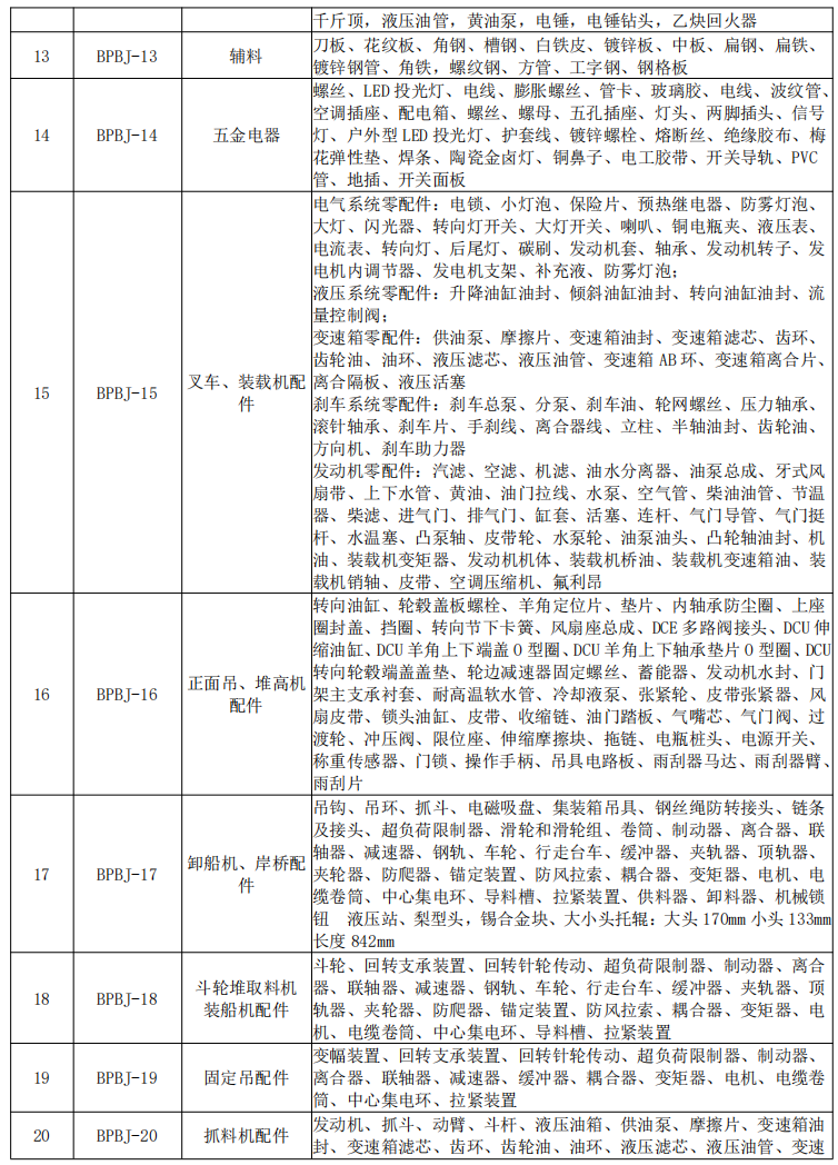 A部分:維修材料備品備件。招標(biāo)范圍:為江蘇鹽城港控股集團(tuán)有限公司2023年港口設(shè)備維修材料備品備件提供采購(gòu)、運(yùn)輸、驗(yàn)收、售后服務(wù)等服務(wù)工作,共分為?20 ?個(gè)標(biāo)段,具體情況如下: