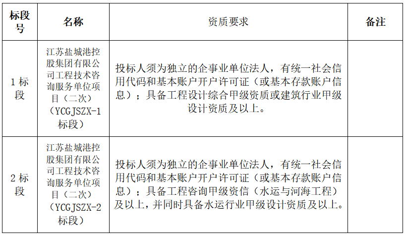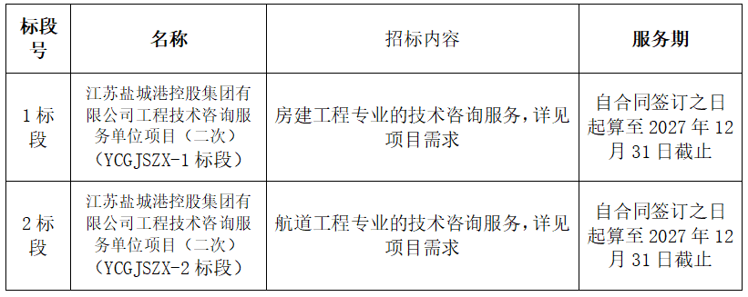 1、項目名稱:江蘇鹽城港控股集團有限公司工程技術(shù)咨詢服務(wù)單位項目(二次)