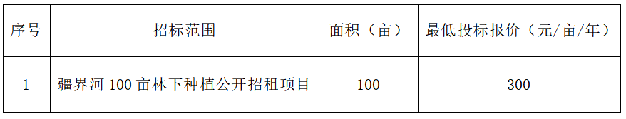 1、項(xiàng)目名稱:疆界河100畝林下種植公開招租項(xiàng)目
