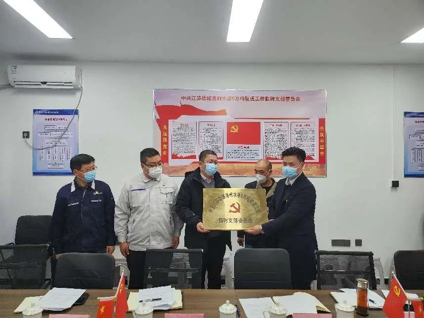 把黨旗插在項目建設第一線丨響水港5萬噸航道工程臨時黨支部正式成立
