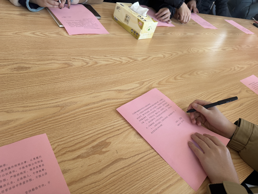 青年們現(xiàn)場(chǎng)簽訂廉潔從業(yè)書并為每位青年送上廉潔日歷及戒尺,進(jìn)一步強(qiáng)化青年們廉潔自律思想意識(shí),進(jìn)一步提醒青年們把廉潔承諾轉(zhuǎn)化為工作動(dòng)力和成效,做遵紀(jì)守法、嚴(yán)格自律的表率,營(yíng)造風(fēng)清氣正的干事氛圍。