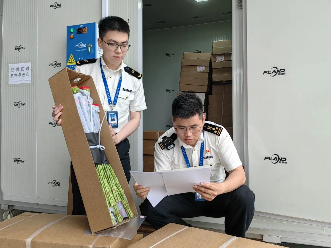 圖為:鹽城海關關員對“空側直通”貨物進行監管。王義/攝