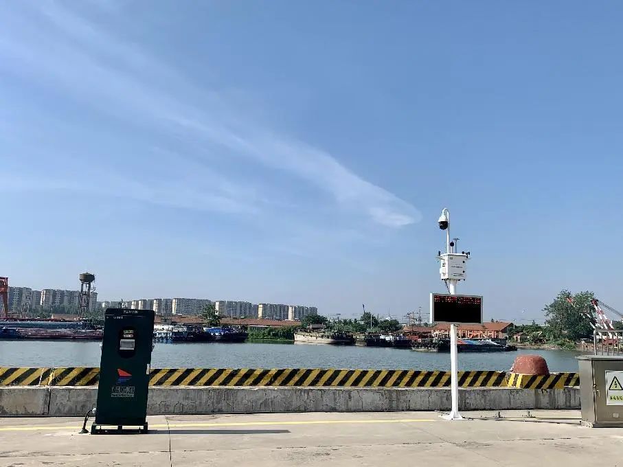 水上服務(wù)區(qū)岸線綠色能源充電樁、粉塵監(jiān)測儀。