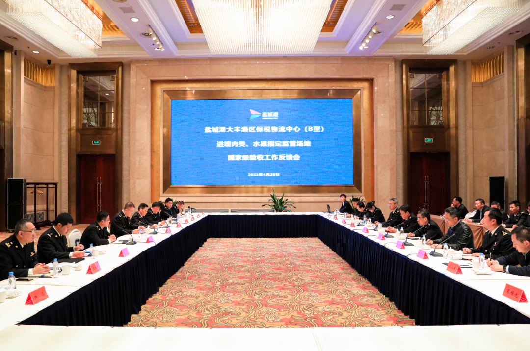 4月25日,國家海關總署組織專家驗收組對鹽城港保稅物流中心(B型)進境肉類、水果指定監(jiān)管場地進行國家級驗收,經(jīng)過專家驗收組的認真查驗審核,同意鹽城港保稅物流中心(B型)進境肉類、水果指定監(jiān)管場地通過國家級驗收。國家驗收組,鹽城港集團黨委書記、董事長周正雄,鹽城海關黨委書記、關長吳志明,鹽城港集團黨委副書記、董事、總經(jīng)理陸帥,南京海關、鹽城海關、市商務局相關負責同志等參加驗收。