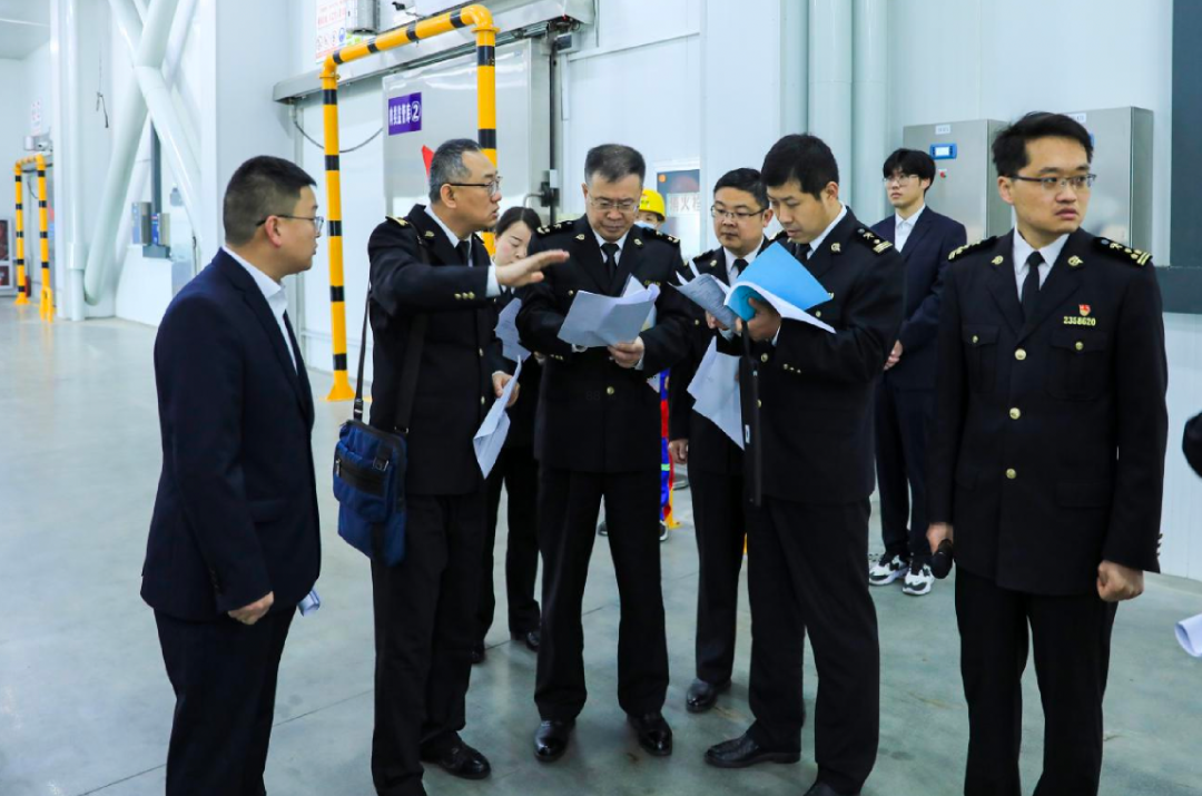 驗收期間,國家驗收組一行前往保稅物流中心,對前置攔截區(qū),肉類、水果指定監(jiān)管場地進行驗核,現(xiàn)場聽取相關情況介紹,隨即召開內(nèi)部研討,就驗收情況進行內(nèi)部評議,并與南京海關、鹽城海關相關負責同志對驗核情況進行交流。