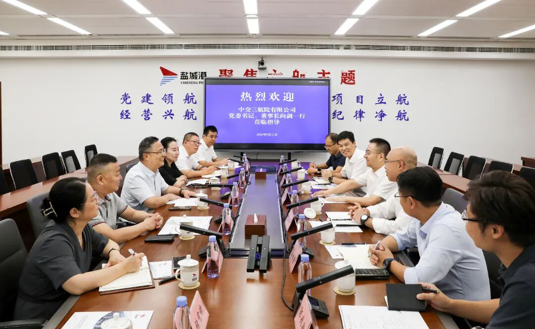 陸帥對向劍一行的到訪表示歡迎,對中交三航院在鹽城港建設發展過程中給予的關心和支持表示感謝,并介紹了鹽城港相關情況。他說,集團自成立以來,緊緊圍繞“河海聯運”一體化發展目標,統籌推進港口基礎設施建設,在生產經營提質、港口能級提升、科技創新賦能等領域持續發力,“握指成拳”突破重重阻礙,發展態勢持續向好。當前,集團積極策應“水運江蘇”建設,搶抓淮河入海水道改航道建設機遇,緊扣“5+1”鐵路運營布局,加快“多式聯運”體系建設,努力打通“鐵水”銜接“最后一公里”,全面實現“降本增效”。希望中交三航院在港口建設、勘察設計、人才培養等方面為鹽城港提供更多支持,共謀合作發展新路徑,推動集團綠色、智慧港口建設,助力鹽城海洋經濟高質量發展。