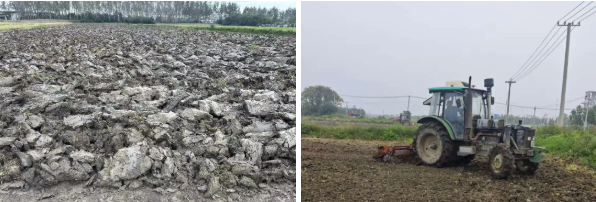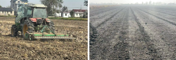 為預(yù)防連續(xù)陰雨天氣給秋播耕整帶來(lái)的“爛耕”“爛種”風(fēng)險(xiǎn),水稻收割一結(jié)束,技術(shù)人員便迅速深入田間,逐塊排查墑情。對(duì)于土壤濕度大、易積水的地塊,立即開(kāi)挖排水溝,加速積水排出,降低土壤含水量,為耕整作業(yè)掃清障礙。在耕整過(guò)程中,公司嚴(yán)格執(zhí)行秸稈還田率達(dá)到100%標(biāo)準(zhǔn),將農(nóng)業(yè)廢棄物變廢為寶,既改善土壤結(jié)構(gòu),又增加有機(jī)質(zhì)含量;旋耕整地嚴(yán)格把控質(zhì)量,土壤深翻深度控制在25—30厘米,確保耕作層疏松透氣,有利于小麥根系下扎;農(nóng)機(jī)操作要求“耕翻到頭、到邊,無(wú)漏耕、無(wú)死角”,確保地塊耕整質(zhì)量均勻一致,為高質(zhì)量播種打造“優(yōu)質(zhì)土壤環(huán)境”。