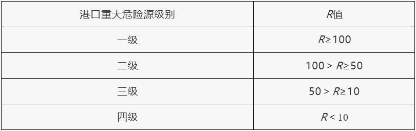 表4 危險貨物重大危險源級別和R值的對應關系