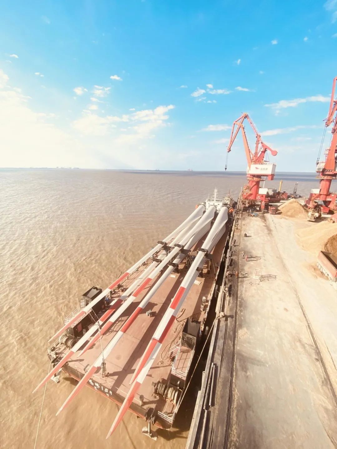 11月28日上午,隨著最后2套90米風電葉片被緩緩吊起,平穩(wěn)裝上遠瑞159輪,這意味著鹽城港大豐港區(qū)港口公司2021年金風科技海上風電項目裝船任務(wù)圓滿完成。本年度,港口公司合計完成金風科技海上風電項目風電葉片吊裝148套,735492立方,累計裝船94條。