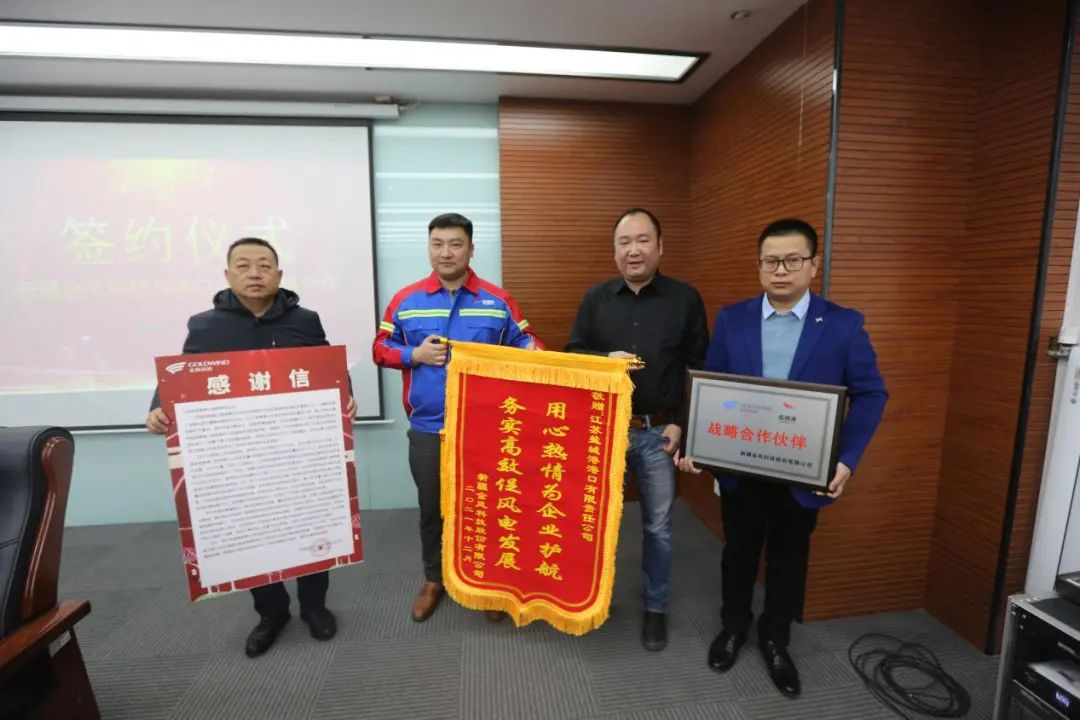 簽約前,金風科技向港口公司贈送錦旗和感謝信,對港口公司一如既往為企業發展提供高效、便捷的物流服務表示感謝。