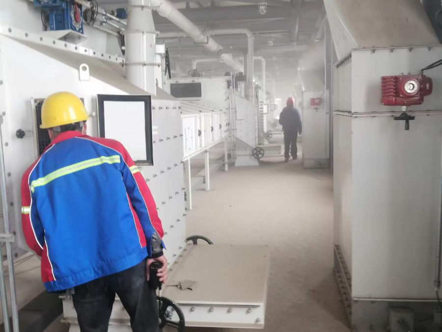 鹽城港港口公司糧儲公司嚴格執行《江蘇鹽城港控股集團有限公司“十四五”農牧林產業特色港發展規劃》方案,持續擴大倉容,增強糧食倉儲中轉能力,目前總倉容25.78萬噸的12座機械化平房倉已全面建成,進一步提升了鹽城港糧食倉儲能級。針對機械化平房倉首次進糧試運營,糧儲公司精心制定了全方位科學的管理制度,明確分工,細化責任,及時仔細排查倉庫的通風系統、糧情測控系統、動力負荷等設備情況,對糧食雜質、溫度、水分進行相關檢測并及時與客戶進行溝通,全面保障糧食儲存的安全性,為客戶提供“管家式”優質服務。