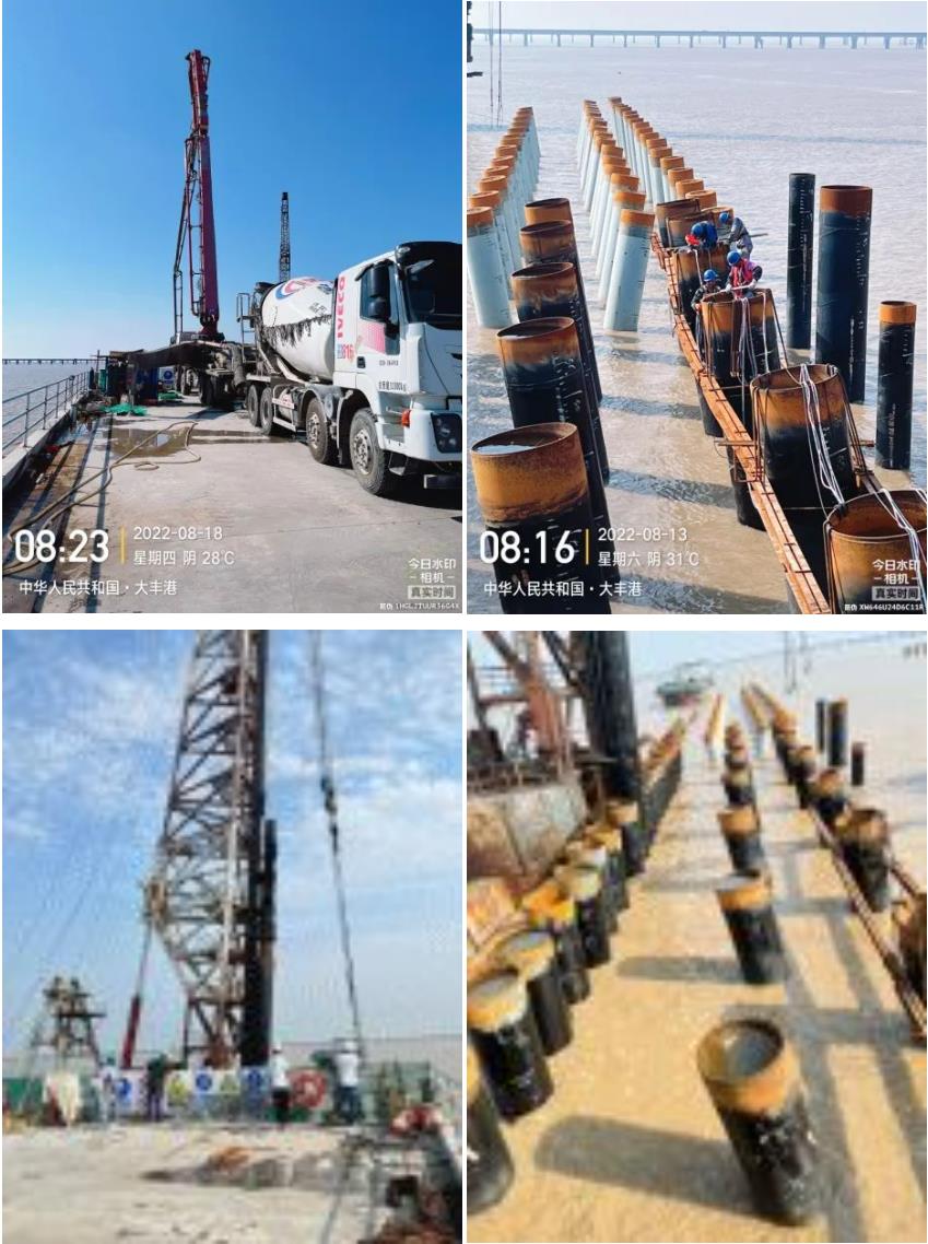 圖二:鋼管樁夾樁焊接施工;
