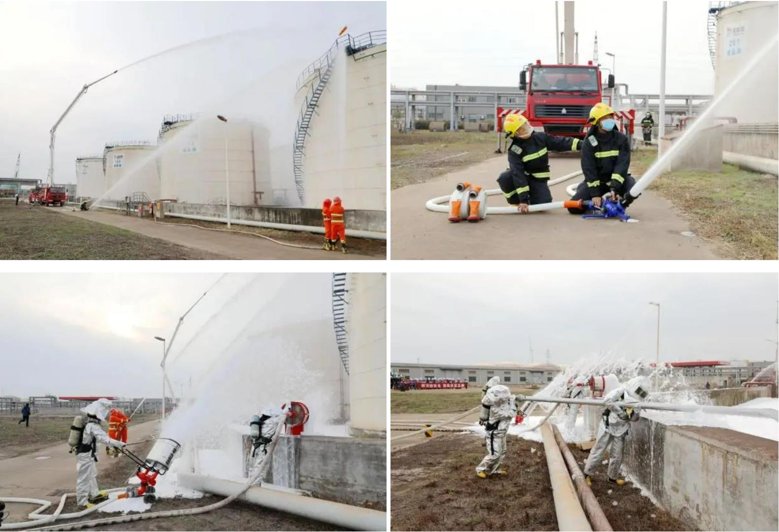 此次演練模擬了成品油101號罐焊接時引發(fā)排污池閃爆并著火的消防全過程。演練過程中,各參演應急小組密切配合、各司其職、環(huán)環(huán)相扣,成功完成了應急救援工作,達到了演練的效果。