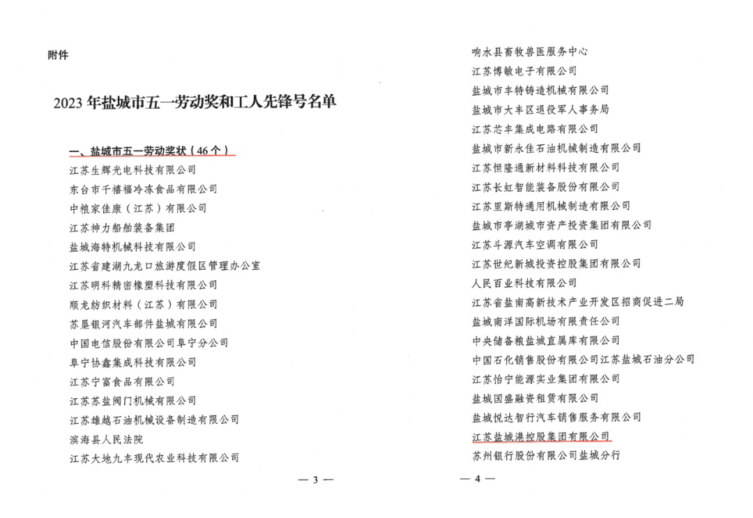近日,鹽城市總工會印發《關于授予2023年鹽城市五一勞動獎和工人先鋒號的通知》,我集團再獲三項表彰。