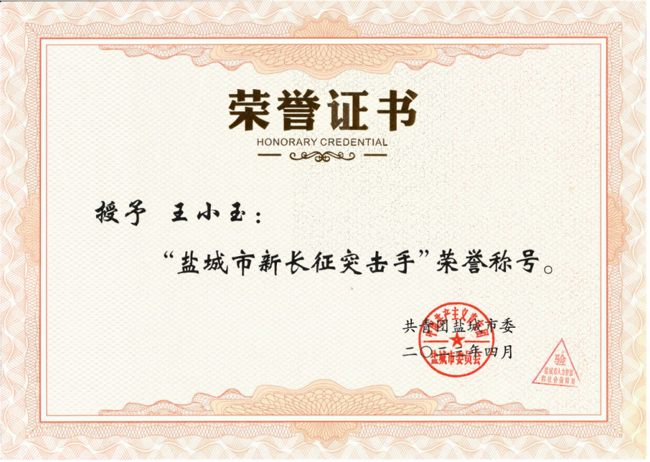 近日,共青團鹽城市委發(fā)布關于表彰“鹽城市兩紅兩優(yōu)”及“鹽城市新長征突擊手”的決定,集團王葉娜、陳詩語、王小玉三名同志分別榮獲“鹽城市優(yōu)秀共青團干部”“鹽城市優(yōu)秀共青團員”“鹽城市新長征突擊手”榮譽稱號。