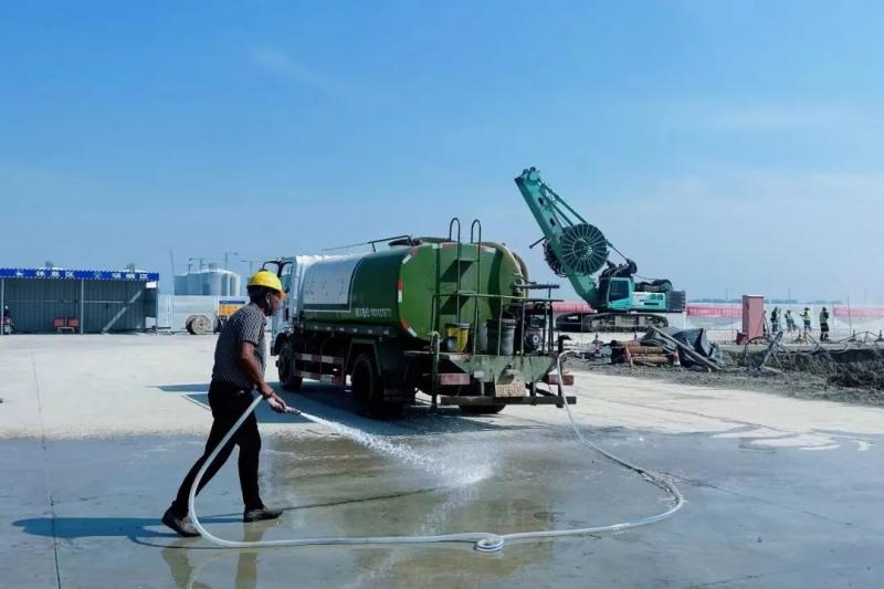 一是提高環境整潔度。在施工期間,對施工現場主要通道、道路進出口、材料加工區、生活辦公區進行硬化處理。安排灑水車輛定時傾灑施工便道,確保道路干凈無淤泥、無浮土、無積水。做好圍擋全封閉、土方挖運作業降塵、渣土車輛密閉運輸、裸露地面全覆蓋等工作,將揚塵管控作為日常工作常抓不懈。