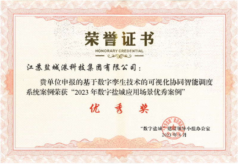 近日,“數字鹽城”建設領導小組辦公室公布了2023年“數字鹽城”應用場景優秀案例名單。科技集團申報的鹽城電子口岸平臺案例獲評二等獎,基于數字孿生技術的可視化協同智能調度系統獲優秀獎。