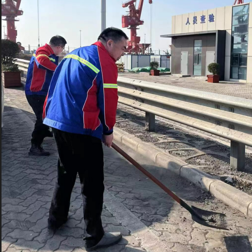 他們手拿鐵鍬 肘夾掃把 急吼吼往前趕