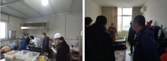 港區(qū)一方面?zhèn)浜米鳂I(yè)界面工作亭、電暖器等保暖設(shè)施;另一方面,科學(xué)搭配員工飲食,注重飯菜營養(yǎng)與保溫,讓一線人員“住的溫暖、吃的熱乎、干的起勁”。