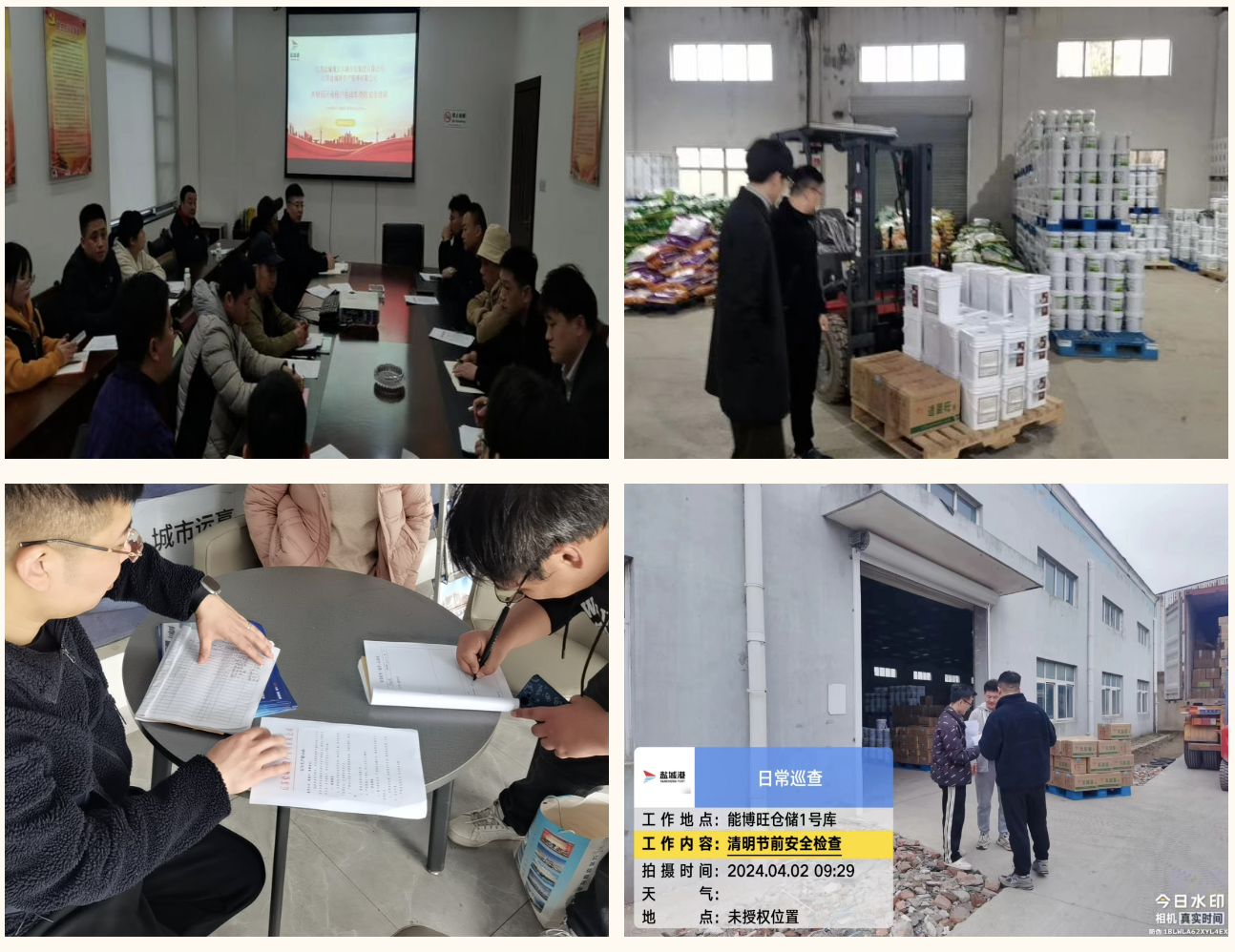 資產公司全覆蓋抓好安全生產工作,組織召開一季度安全生產工作例會暨清明節前安全工作安排部署會,明確責任分工,壓實工作責任。聯合大豐港集團組織木材園區租賃企業開展“廠中廠”和電動自行車消防安全專題培訓,向承租人開展消防知識宣傳教育,進一步強化企業安全生產主體責任落實,提升企業安全管理水平和防控各類事故的能力,抓牢教育培訓,提升管理實效。開展節前安全大排查,對檢查發現的問題當場下發整改通知書,要求立即或限期整改,切實消除隱患;發放節前安全提示函,強調疏散通道、安全出口等生命通道必須保持暢通,鞏固前期消防隱患整治成果,排查新生成和“回潮”的隱患,強化隱患檢查,守護“清明”安全。