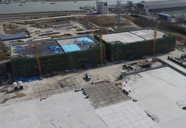 射陽港區綜合倉儲物流項目1#、2#倉庫已完成主體及二次結構施工;停車場區域第一層混凝土已全部完成澆筑、面層混凝土完成澆筑75%;墻體粉刷完成約70%,屋面防水、保溫已基本完成,消防管道安裝完成約85%,窗框安裝完成約30%,兩座沉井混凝土已澆筑完成。完成總進度的75%。主體結構驗收完成后,全面進入裝飾裝修、門窗安裝、智能化、水電消防等工程的施工。