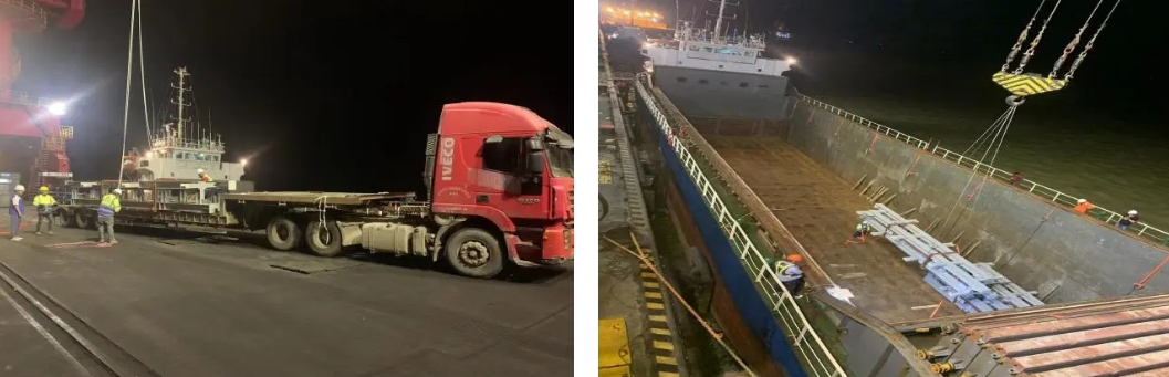 作業過程中,射陽港區選派經驗豐富、素質過硬的門機司機進行卸船作業,根據貨輪進港前期雙方制定的裝貨方案與綁扎方案,全力攻堅推進裝卸作業圓滿完成。“加快速度!確保安全!我們盡量在30個小時內完成這批貨物的裝卸!”他的聲音再次響起,不斷激勵著碼頭全體作業人員。