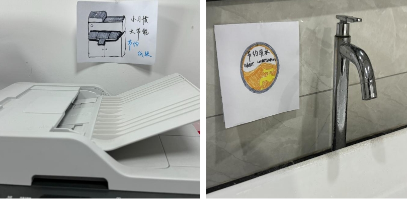 張貼宣傳節能減耗手繪畫。在公司內部開展節能減耗主題繪畫活動,并在醒目位置張貼員工手繪畫,時刻提醒大家節約用水、用電、用紙等公共能源,旨在通過活動讓更多人參與到節能減耗環保行動中來。