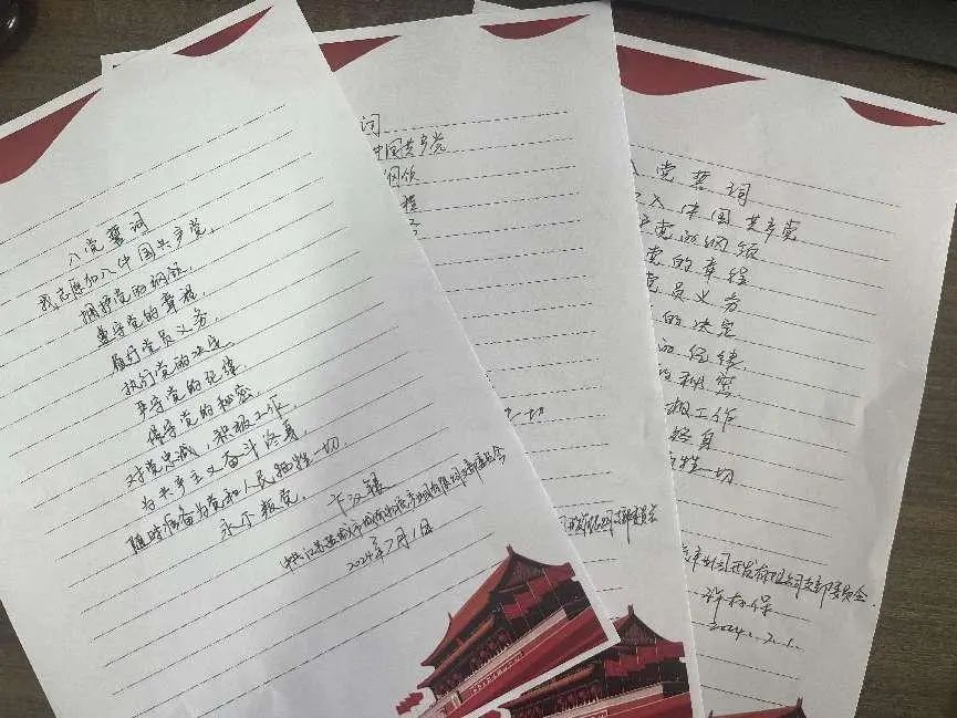 一筆一劃,書寫的是對黨的莊嚴(yán)承諾;一撇一捺,凝聚的是對黨的無限忠誠。黨員們懷著崇敬的心情,手握鋼筆,認(rèn)真地抄寫著每一個字。每一個筆畫都充滿力量,每一句誓言都飽含深情。
