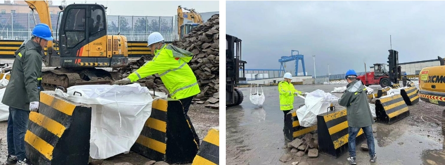 在接到這一“急單”后,響水港區(qū)迅速響應(yīng),立即著手制定詳細作業(yè)計劃,作業(yè)計劃明確到各個環(huán)節(jié)責(zé)任人和時間節(jié)點。在面對港區(qū)現(xiàn)有資源匱乏的困境,生產(chǎn)組副組長顧海偉挺身而出,向客戶和領(lǐng)導(dǎo)立下軍令狀,保證按時完成緊急任務(wù)。港區(qū)積極協(xié)調(diào)各類機械和人員調(diào)配,在港區(qū)機械有限的情況下,從社會各界連夜聯(lián)系租用挖機,同時組建了一支臨時灌裝“作戰(zhàn)隊伍”。