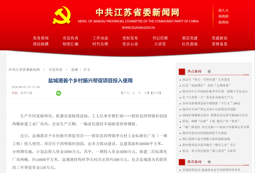 媒體聚焦!主流媒體關注鹽城港鄉村振興項目