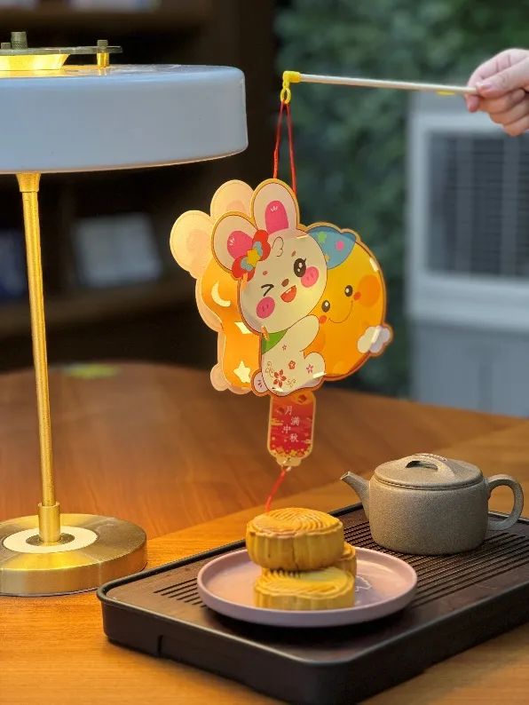 系上流蘇繩,穿上燈帶,扣入玉兔,大家認真制作著屬于自己的花燈,一個個俏皮可愛的古風燈籠就制作成型了。制作玉兔花燈環節讓組員們親自動手體驗了文化遺產的魅力,不僅展示了組員們的創造力,也體現了對傳統文化的傳承與尊重。燈籠制作完成后,所有參與人員在花燈的映照下合影留念,留下了這個溫馨時刻的美好記憶。