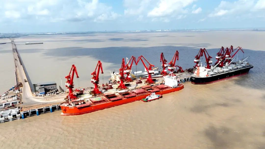 秋風吹過,碼頭的海面泛起層層漣漪,仿佛在訴說著歲月的故事。貨輪在波光粼粼的海面上穿梭,留下一道道美麗的痕跡。