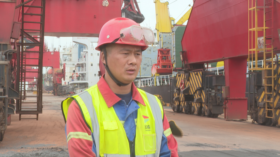 在鹽城港大豐港區通用碼頭上,來自莫桑比亞的長航潤海號貨輪,滿載6萬噸鈦礦停靠2號泊位正在卸貨,四臺門座式起重機協同發力,預計將在3天內卸載完成,滿足內地企業生產需要。在1號泊位上,來自越南的貨輪滿載木片,也在緊鑼密鼓地卸載,碼頭上運輸車輛川流不息。據了解,為保證在規定的時間內完成任務,大豐港區工作人員加班加點組織裝卸。