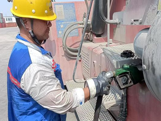 駕駛員和押運員們奔波在碼頭與工程機械設備之間,負責加油和卸油工作。高溫讓駕駛室變成了“桑拿房”,作業現場更是熱氣逼人,但他們毫不在意,專注地完成每一次任務,確保油品安全、及時地送達,為設備的正常運轉提供支持。