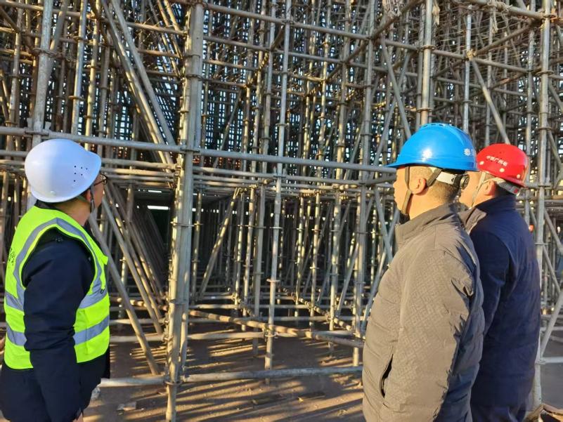 腳手架工程是冬季施工安全管控的重點。在海關監管堆場項目現場,項目管理團隊從嚴規范腳手架搭設、使用及拆除全流程管理。特別關注基礎穩定性,嚴禁在凍結地基上直接搭設架體,同步設置排水系統防止凍脹危害。及時清除路面積雪凍冰,在通道關鍵部位加設防滑條。嚴禁明火取暖,全面檢查消防器材并落實保溫措施,切實防范火災風險。