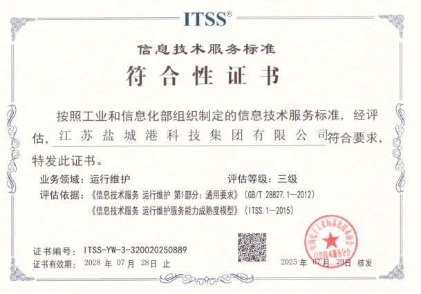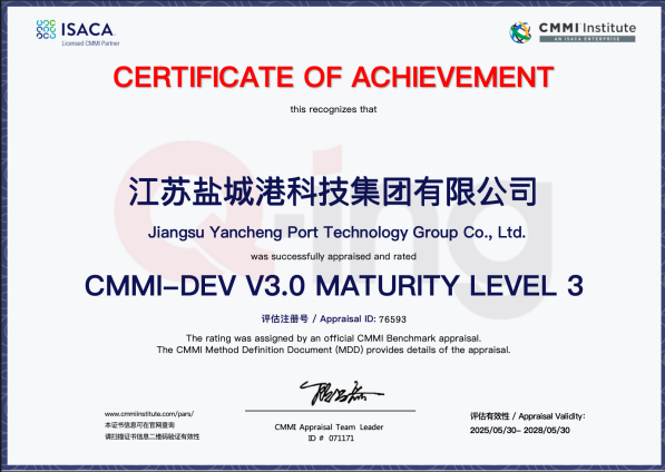 從平臺建設(shè)、資質(zhì)認(rèn)證、人才培育多維度搭建創(chuàng)新支撐體系,為科技創(chuàng)新筑牢根基。成功獲批“鹽城市智慧港口智能監(jiān)管系統(tǒng)工程技術(shù)研究中心”,通過CMMI三級、ITSS三級信息技術(shù)服務(wù)標(biāo)準(zhǔn)符合性認(rèn)證,構(gòu)建專業(yè)化、規(guī)范化的技術(shù)研發(fā)與服務(wù)框架;港機公司緊跟步伐,成功入選江蘇省創(chuàng)新型中小企業(yè)、鹽城市高新技術(shù)企業(yè)培育庫,順利通過環(huán)境管理體系、質(zhì)量管理體系等認(rèn)證,資質(zhì)體系不斷完善。新增4本系統(tǒng)集成項目管理工程師(中級)證書,專業(yè)人才隊伍持續(xù)壯大,為創(chuàng)新工作提供智力支撐。
