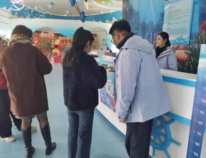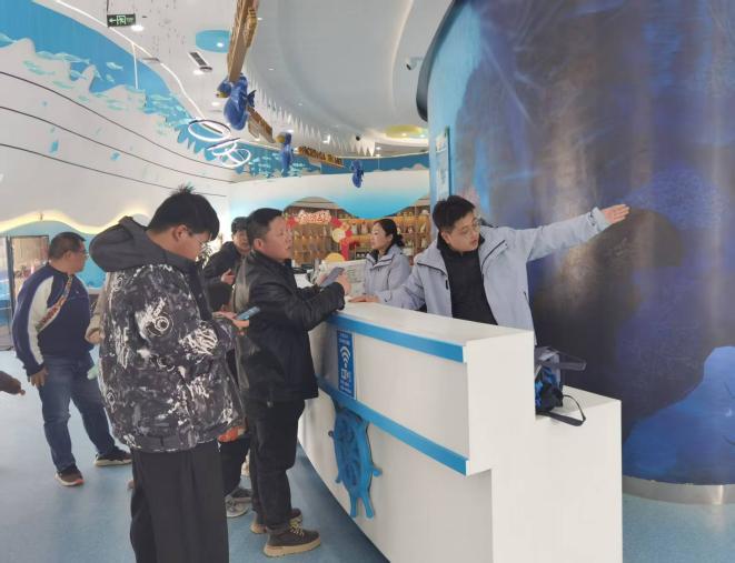 面向?qū)W生群體,景區(qū)推出專屬集章福利活動。 工作人員全程指導(dǎo)游客領(lǐng)取“冒險手冊”,在原神海洋元素實驗站、環(huán)保垃圾分類挑戰(zhàn)站提供專業(yè)講解與協(xié)助。游客集齊3個印章可兌換鑰匙扣、海港主題軟面本等文創(chuàng)產(chǎn)品,集齊7個印章可獲贈溫泉票與海洋館門票組合禮包,創(chuàng)作大賽獲獎?wù)吒袡C會贏得住宿權(quán)益。數(shù)字體驗區(qū)同步升級,港泊員工協(xié)助游客操作虛擬導(dǎo)游小程序,實現(xiàn)與鐘離 “云游” 海鹽產(chǎn)地的沉浸式體驗;在數(shù)字藏品兌換處,工作人員為游客講解收藏攻略,助力游客帶走專屬新春紀念。此外,景區(qū)還設(shè)置原神玩家專屬餐飲區(qū)、王者情侶打卡路線,由專人引導(dǎo)游覽。
