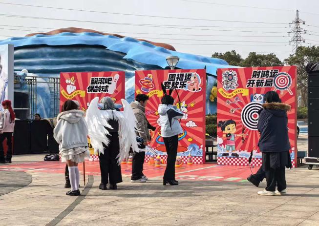 在潮流體驗之外,景區(qū)傳統(tǒng)年味氛圍濃厚。海豚明星與馴養(yǎng)員共舞送福,趣味科普課堂傳遞海洋保護理念,馬年元素與紅色裝飾遍布全場,“騏驥馳騁”的新春氛圍拉滿。外廣場年味攤位熱鬧非凡,熱飲零食隨心選,套圈、射箭等民俗游戲趣味十足,工作人員全程互動,讓傳統(tǒng)年俗煥發(fā)新活力。